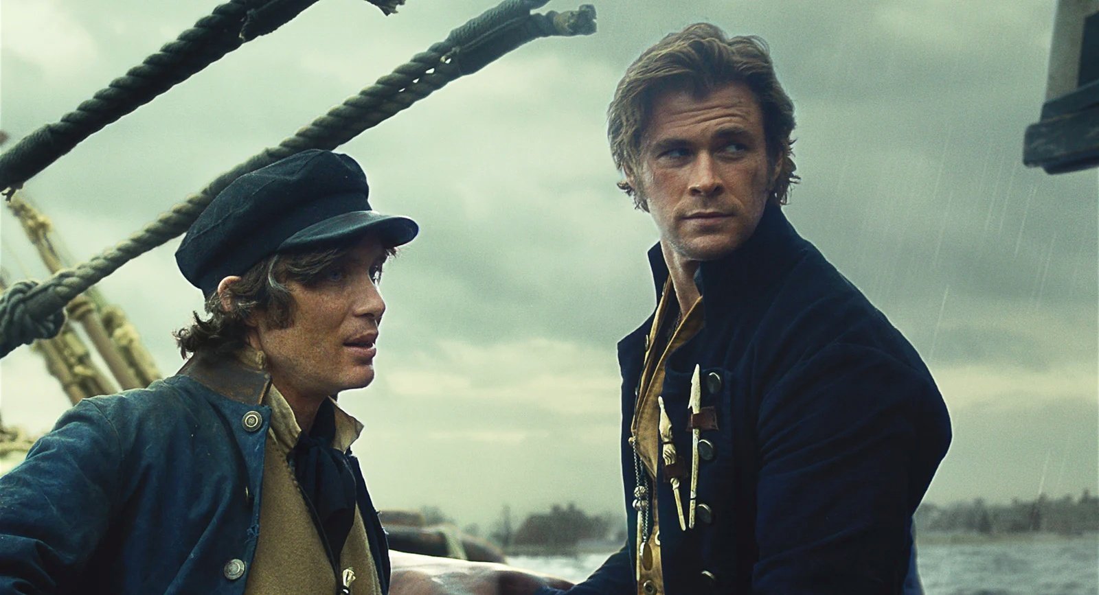 Mais plus que le morceau de bravoure attendu (la destruction du baleinier par le cachalot géant), c’est la deuxième partie qui nous met K.O. Devant recourir aux pires actions imaginables pour survivre en pleine mer à l’aide de simples barques équipées de rames, les marins finissent par dépérir dans une puissante imagerie, entre corps desséchés, soleil de plomb et tempête dévastatrice. Reste ce moment d’une poésie grandiose, ce regard entre Chase, le capitaine en second et le cachalot.