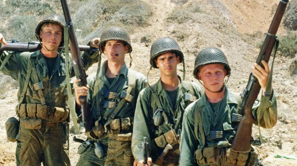 Pourtant, il parvient, près d’une décennie plus tard, à obtenir un financement pour porter à bien ce projet qu’il conserve dans un coin de sa tête depuis 1956. Pour comprendre les origines de ce film, il faut remonter en arrière, lors de la Seconde guerre mondiale. Il sert la 1ère division d’infanterie américaine pour laquelle il est soldat et reporter de guerre. Il participera à de nombreux débarquements (dont ceux en Afrique du Nord et en Normandie) et tournera même un film documentaire sur la libération du camp de Falkenau. Il y a donc une véritable réalité du terrain pour Fuller qui décide de plonger le spectateur au coeur de l’enfer.
