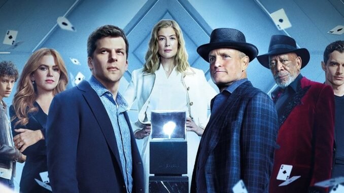 On rembobine. Été 2013. Dans une succession de suites en tous genres et / ou reboot (MAN OF STEEL, MOI, MOCHE ET MECHANT 2, THE WOLVERINE, MONSTRES ACADEMY, STAR TREK 2,…), les films non ralliés à une franchise ont du mal au box-office (LONE RANGER est un bide, PACIFIC RIM déçoit, seul WORLD WARZ s’en sort à peu près). Celui que personne n’avait vu venir provient d’un scénario original, non adapté d’un roman et d’une quelconque licence. Le pitch ? Une bande de magiciens braqueurs tente « le coup du siècle ». Plutôt frais, emmené par une belle troupe et des pirouettes scénaristiques efficaces (à défaut d’être totalement convaincantes), le film cartonne avec 350 millions de dollars de recettes mondiales et plus de 3 millions d’entrées en France.