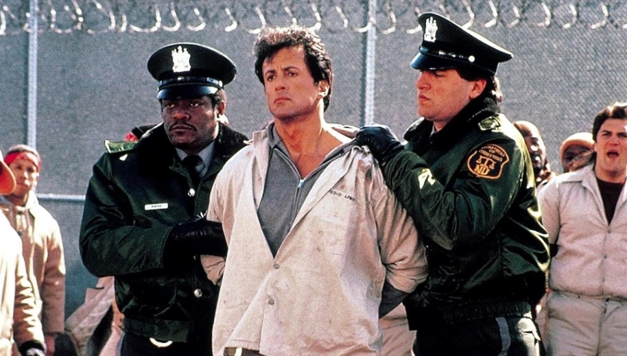 Dès son transfert dans la prison de Drumgoole, un véritable complot est orienté vers lui. À partir de là, HAUTE SECURITE devient hautement divertissant. Epaulé par d’autres prisonniers qui deviennent ses amis (incarnés à l’écran par Tom Sizemore, Frank McRae, Larry Romano), Leone devient cet archétype de l’homme simple au bon coeur, poussé à bout par l’injustice. Etonnamment sobre, Stallone est de tous les plans dans lesquels il dissimule une tension palpable, mais qui n’explose pas avant le dernier tiers dufilm. La structure du récit s’articule autour des humiliations que subit le protagoniste, toutes étant concoctées par un Donald Sutherland à la droiture imparable. Sa froideur dissimule un machiavélisme à peine dissimulé. Un type de rôle qu’affectionne particulièrement l’acteur et pour lequel son visage correspond tout à fait à la dose de sadisme exigé.