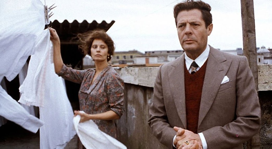 Le pitch : À Rome, le 8 mai 1938, Hitler rencontre Mussolini. Tous les Romains ont déserté leurs habitations pour aller assister à la cérémonie. Dans un grand immeuble, Antonietta est contrainte de rester à la maison pour s’occuper des tâches ménagères. Le hasard va la mettre en contact avec un homme esseulé qu’elle a aperçu dans un appartement de l’autre côté de la cour. Il s’agit de Gabriele, un intellectuel homosexuel qui, pour cette raison, a été exclu de la radio nationale où il était présentateur et est menacé de déportation.