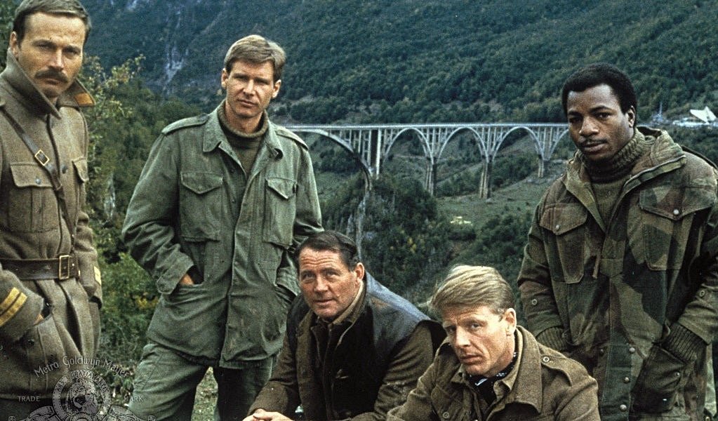 Le film d’Hamilton reprend après le récit des CANONS DE NAVARONE : Après une mission périlleuse sur l’île de Navarone, le major Mallory et le sergent Miller, membres d’un commando des forces américaines, doivent se rendre en Yougoslavie afin d’y éliminer un traître au service des Allemands. Mais l’avion qui les transporte est touché par un obus et contraint à se poser de toute urgence. Les deux hommes sont alors capturés par l’ennemi mais, décidés à mener à bien leur mission, vont tout mettre en œuvre pour s’évader et rejoindre la Résistance. En coulisses, c’est également la guerre, surtout entre Harrison Ford et Guy Hamilton qui ne s’entendent pas du tout. Le premier admettra avoir accepté ce rôle pour l’argent et pour le sortir de la « Han Solo mania ». Le second n’apprécie guère le jeu d’acteur de Ford et menace de le couper au montage s’il ne fait pas mieux. Le studio s’en mêle et calme le jeu : Harrison Ford est désormais une vedette donc un argument commercial pour la sortie du film. L’acteur avouera plus tard avoir vécu là l’un des pires tournages de sa vie…